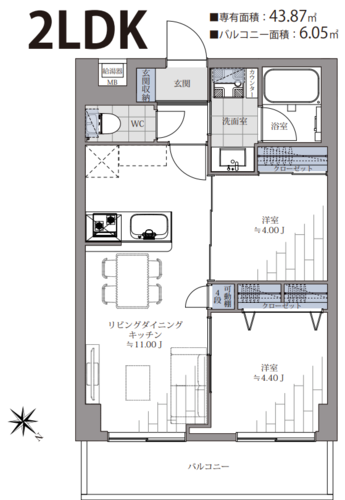 2LDK/43.87㎡