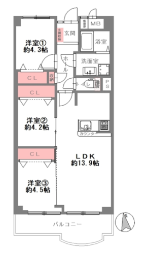| 間取り | 3LDK | 方角 | 南 |
