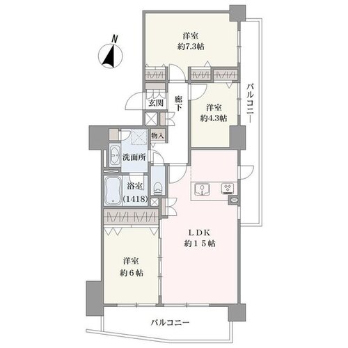 | 浴室・トイレ・洗面所 | 浴室乾燥機 / 浴室1418サイズ / 温水便座洗浄機 | バルコニー | 2面バルコニー |
