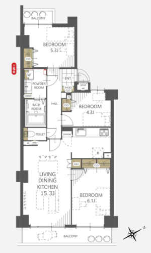 | 浴室・トイレ・洗面所 | 温水便座洗浄機 | バルコニー | 2面バルコニー / 両面バルコニー |