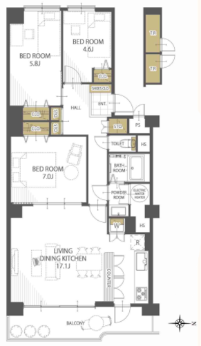 | 専有面積 | 壁芯 81.09㎡ | バルコニー面積 | 8.96㎡ |