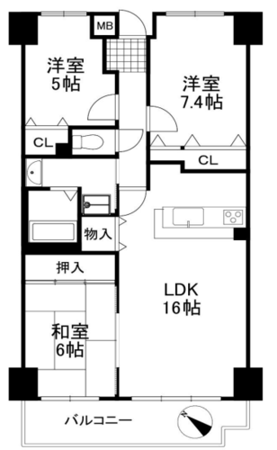 | 間取り | 3LDK | 方角 | 南西 |