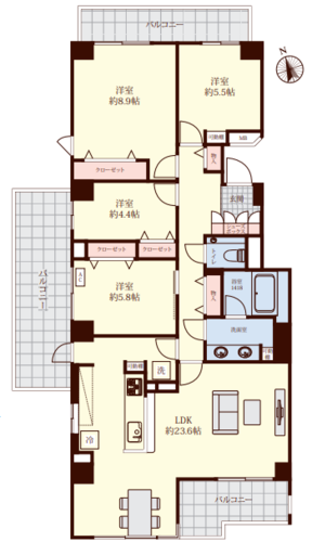 | 専有面積 | 壁芯 105.39㎡ | バルコニー面積 | 21.23㎡ |