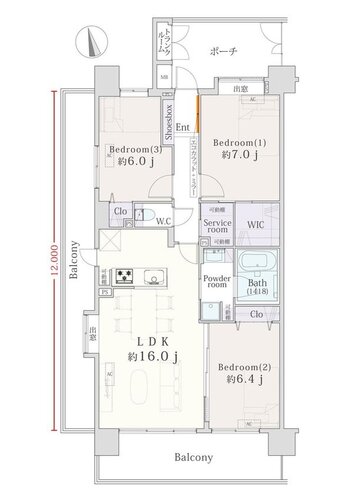 3SLDK + WIC+TR/80.73㎡