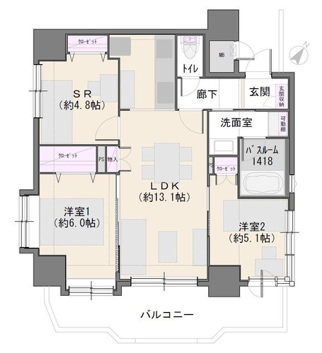 | 位置 | 角部屋 | 部屋 | 全居室フローリング |