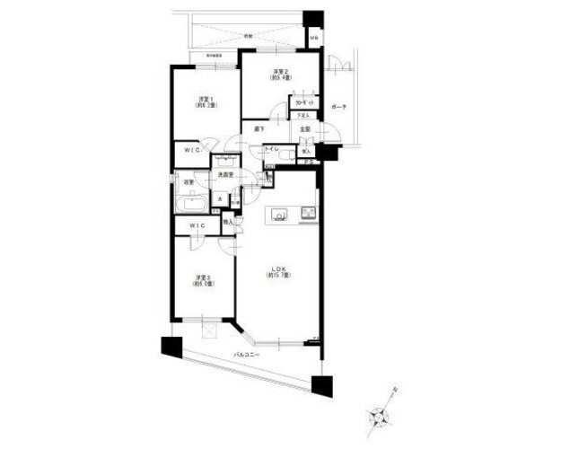| 専有面積 | 壁芯 75.0㎡ | バルコニー面積 | 11.04㎡ |