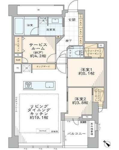 2LDK + S(納戸)/77.4㎡
