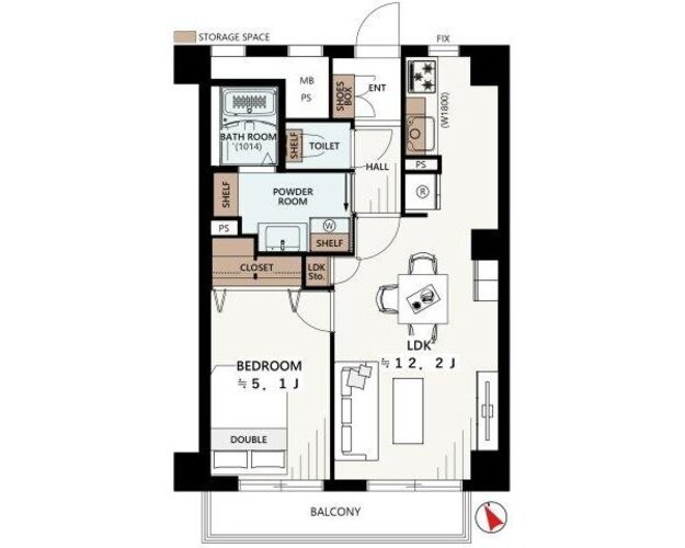 | 間取り | 1LDK | 方角 | 南西 |