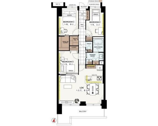 | 間取り | 3LDK + W+M | 方角 | 南 |