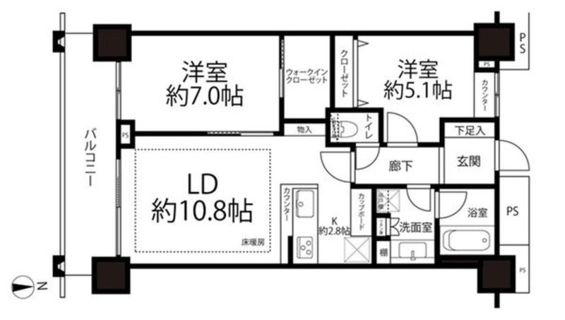 | 間取り | 2LDK + W | 方角 | 南 |