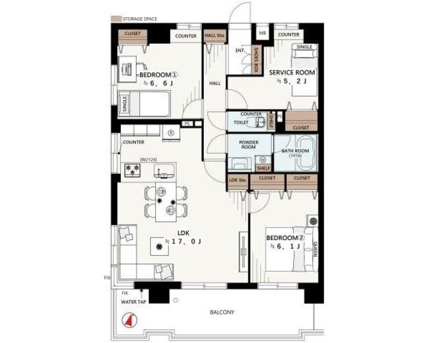 | 間取り | 2LDK + S(納戸) | 方角 | 南東 |