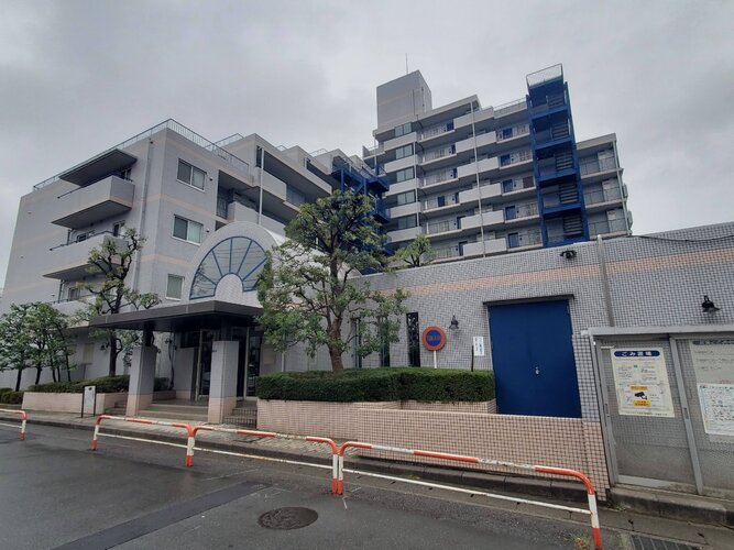 静かな住宅地に佇む美しいタイル張りのマンション。
