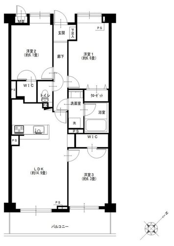 | 間取り | 3LDK + 2WIC | 方角 | 南東 |