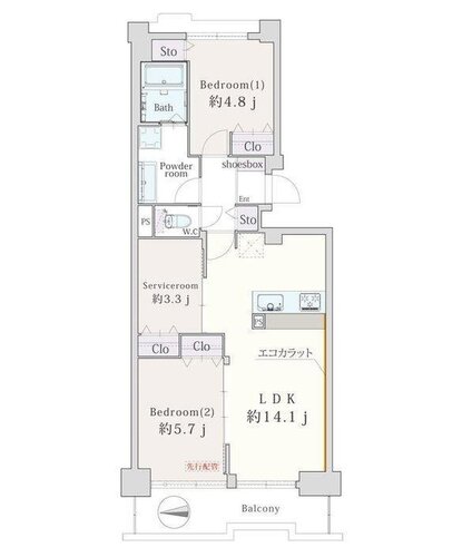 | 間取り | 2LDK + S(納戸) | 方角 | 西 |