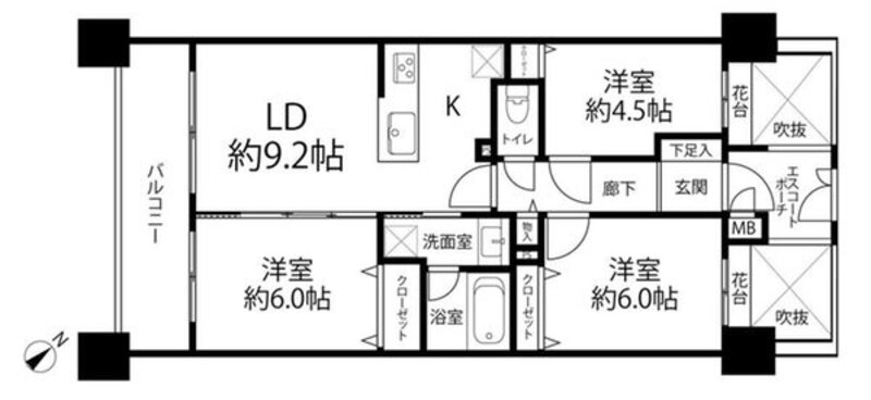 | 専有面積 | 壁芯 62.31㎡ | バルコニー面積 | 9.07㎡ |