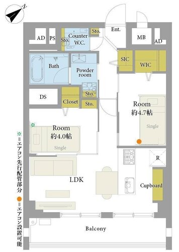 2LDK + WIC+SIC/48.0㎡