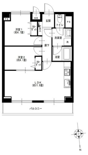 | 間取り | 2LDK | 方角 | 北 |
