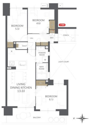 | 専有面積 | 壁芯 61.58㎡ | バルコニー面積 | 10.46㎡ |