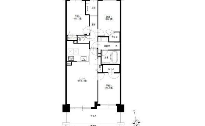 | 専有面積 | 壁芯 75.6㎡ | バルコニー面積 | 7.56㎡ |