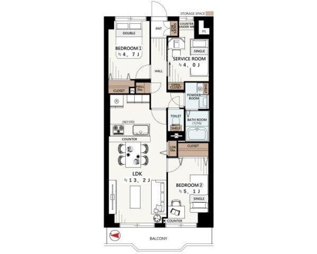 | 間取り | 2LDK + S(納戸) | 方角 | 西 |