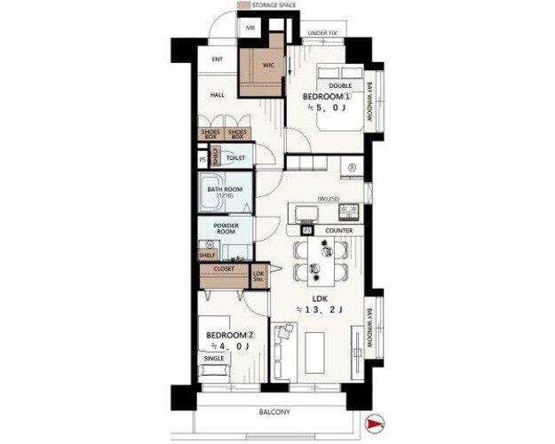 2LDK + WIC/54.3㎡