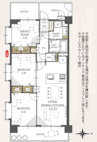 | 専有面積 | 壁芯 63.72㎡ | バルコニー面積 | 13.4㎡ |