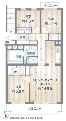 | 間取り | 3LDK + WIC | 方角 | 南 |