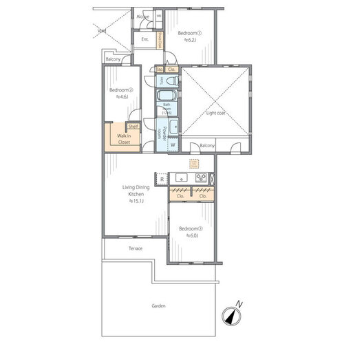 3LDK + WIC+テラス+専用庭/77.78㎡