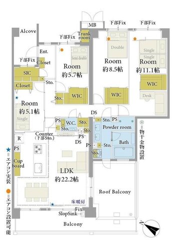 4LDK + 3WIC+SIC+ルーフバルコニー/125.08㎡