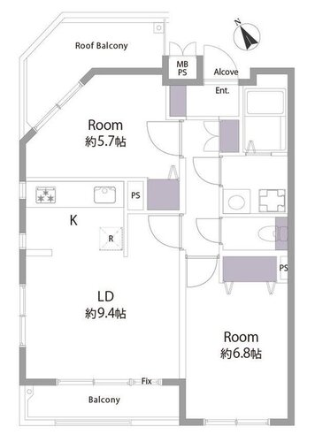 2LDK + ルーフバルコニー/57.21㎡