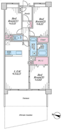 | 間取り | 3LDK + WIC+専用庭 | 方角 | 東 |