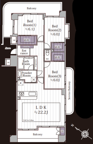 | 間取り | 3LDK + 3WIC | 方角 | 南西 |