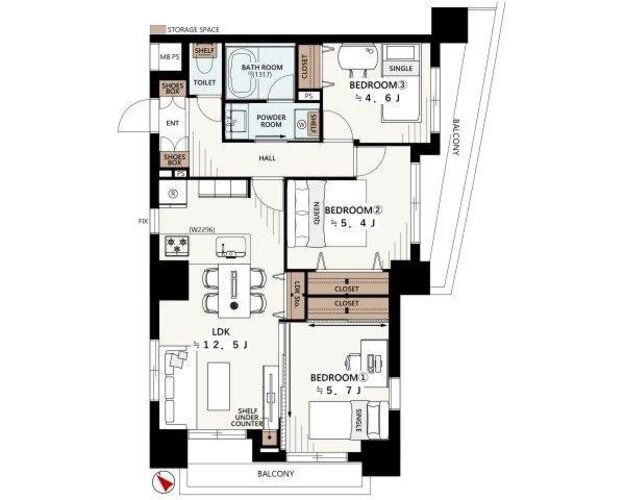 | 位置 | 角部屋 | 部屋 | 全居室フローリング |
