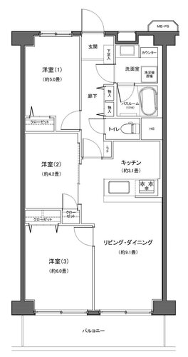 3LDK/61.6㎡