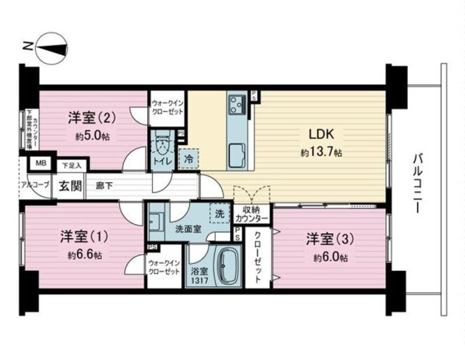 | 浴室・トイレ・洗面所 | 浴室乾燥機 / 追い焚き / 浴室1317サイズ / 温水便座洗浄機 | バルコニー | |