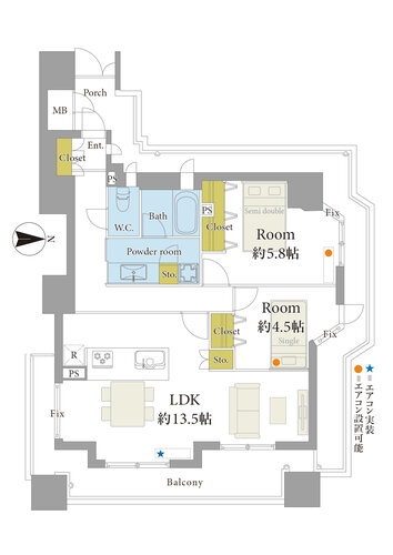 | 位置 | 角部屋 | 部屋 | 全居室フローリング |