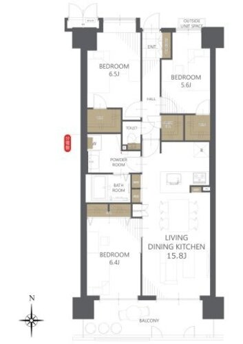 | 専有面積 | 壁芯 76.86㎡ | バルコニー面積 | 11.59㎡ |