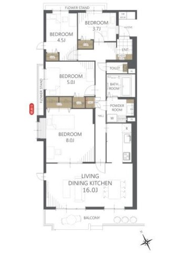| 専有面積 | 壁芯 92.65㎡ | バルコニー面積 | 8.19㎡ |