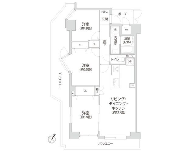 | 浴室・トイレ・洗面所 | 浴室乾燥機 / 追い焚き / 浴室1216サイズ / 温水便座洗浄機 | バルコニー | 2面バルコニー / L字バルコニー |