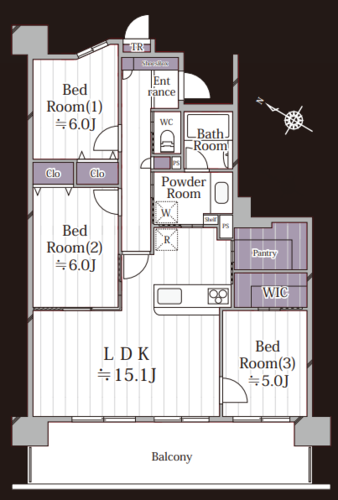 | 間取り | 3LDK + WIC+パントリー | 方角 | 南西 |
