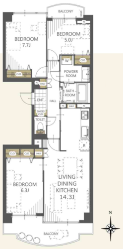 | 専有面積 | 壁芯 76.28㎡ | バルコニー面積 | 12.41㎡ |