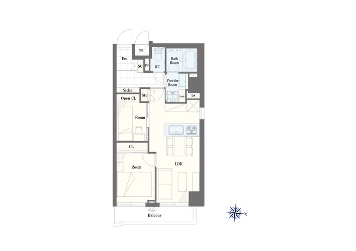 | 専有面積 | 壁芯 44.96㎡ | バルコニー面積 | 5.15㎡ |