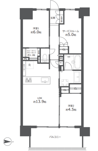 | 間取り | 2SLDK + WIC | 方角 | 東 |