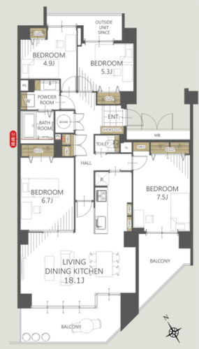| 専有面積 | 壁芯 99.14㎡ | バルコニー面積 | 14.15㎡ |