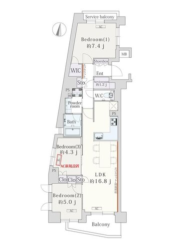 3LDK + S +W/75.8㎡