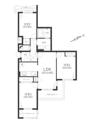 ■洋室3にワークスペースあり