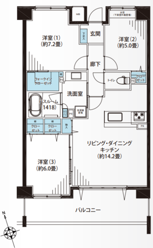 | 浴室・トイレ・洗面所 | 浴室乾燥機 / 追い焚き / 浴室1418サイズ | バルコニー | |