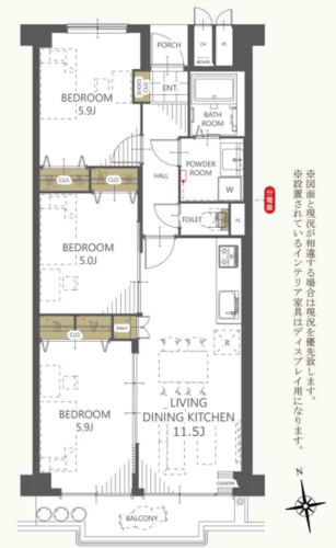 | 位置 | 部屋 | 全居室フローリング | |