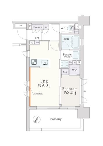 1LDK + WIC/35.38㎡