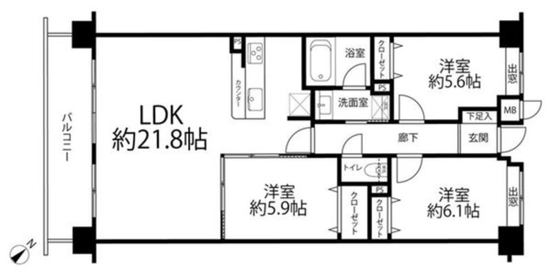 | 間取り | 3LDK | 方角 | 南西 |